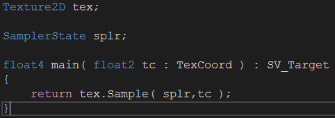 figure 3b 남은 것은 Bind하는 것인데 어렵지 않습니다. 단순히 PixelShader에 셋을 해주면 끝입니다. Texture을 렌더링 하기 위해선 여기서 한 발 더 나아가서 Sampler라는 것이 필요합니다. 이것은 파이프 라인에게 어떤 식으로 Texture을 분석할 것인지 가이드 라인을 제공한다고 보면 됩니다.