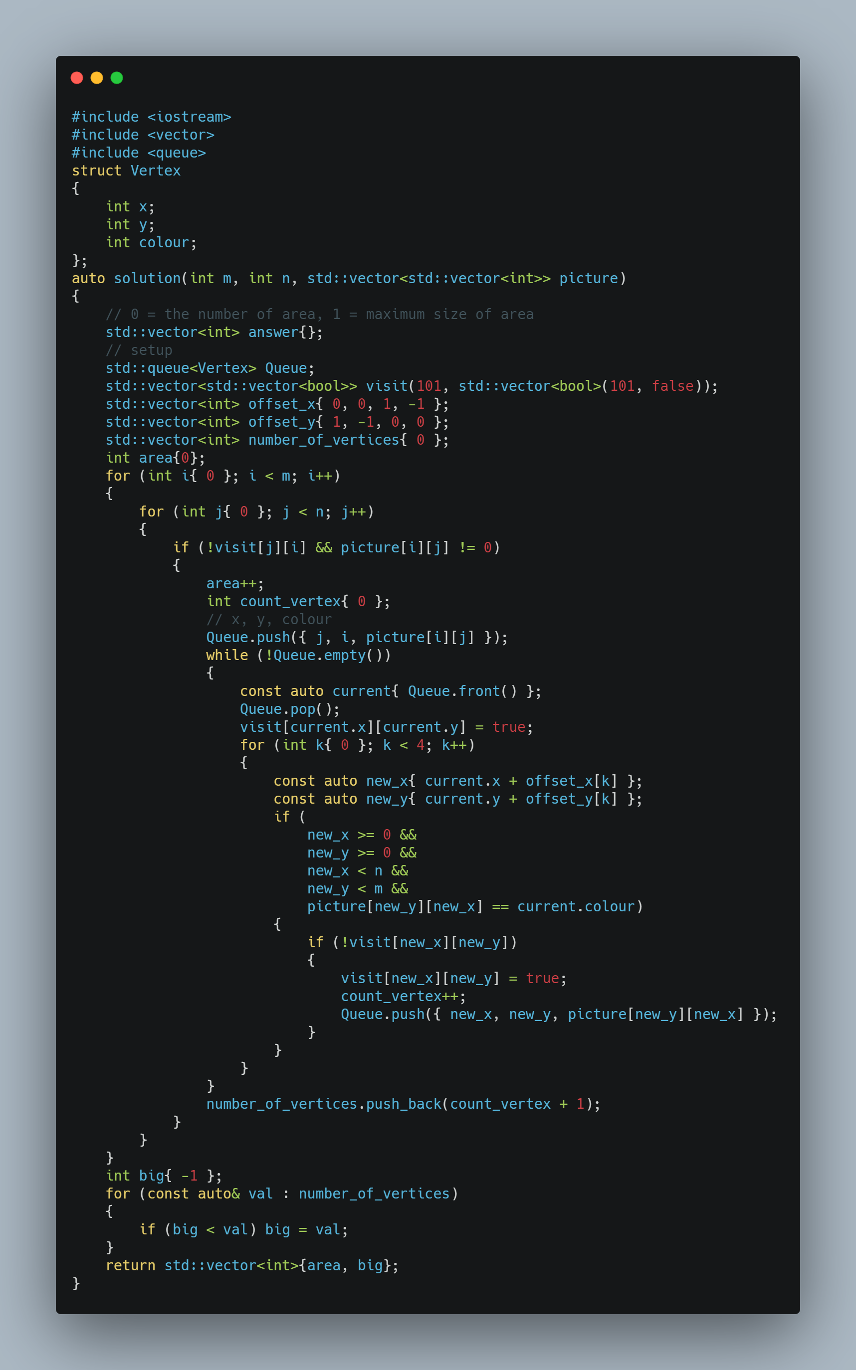BFS, DFS의 구조, 응용을 익히고 Vertices의 개수를 세거나 영역을 구하는 등 몇 가지 유형이 정해진 경우가 종종 있다고 생각합니다. 마땅히 C++의 어떤 STL을 응용한 것은 없습니다.