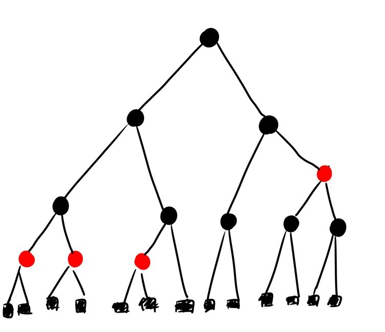 Property 2.1. Root node에서 시작하여 모든 Leaf node까지 이르는 경로 상의 검은색(Black coloured node)의 합은 같다. (Black-height)