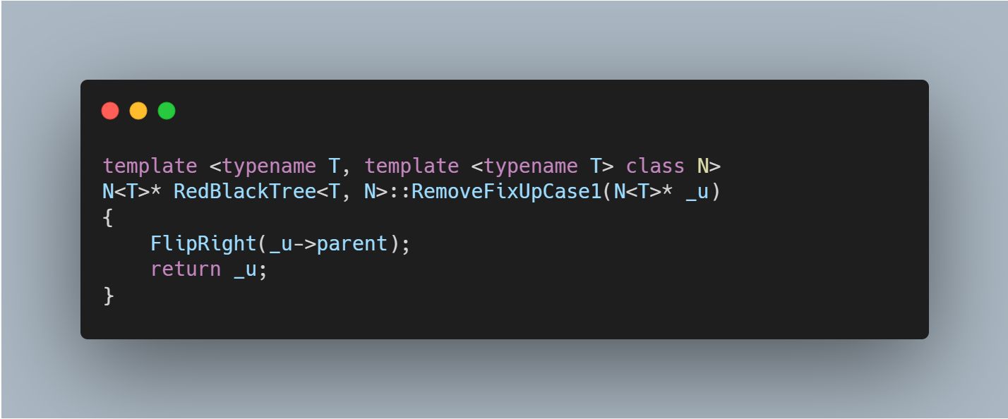 따로 이 RBT의 높이에 관한 이야기를 했었는데 높이는 최대 2log(n+1)을 넘을 수가 없었습니다. Big-O Notation으로 O(logn)에 해당하며 RemoveFixUp이 u로부터 Root node로 올라가며 검증한다는 점을 바탕으로 이 내장 함수가 O(logn)내에서 해결된다는 것을 알 수 있습니다.