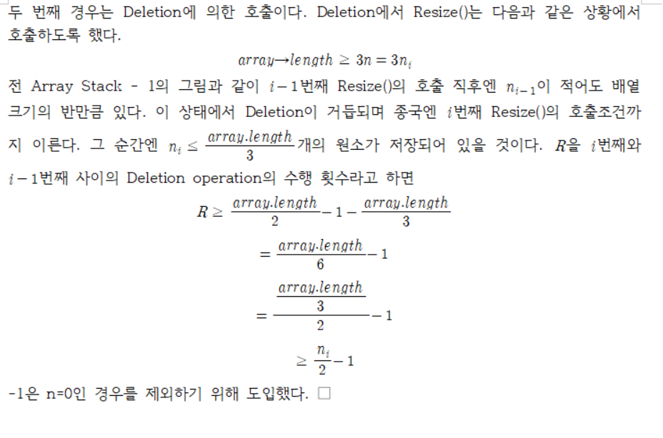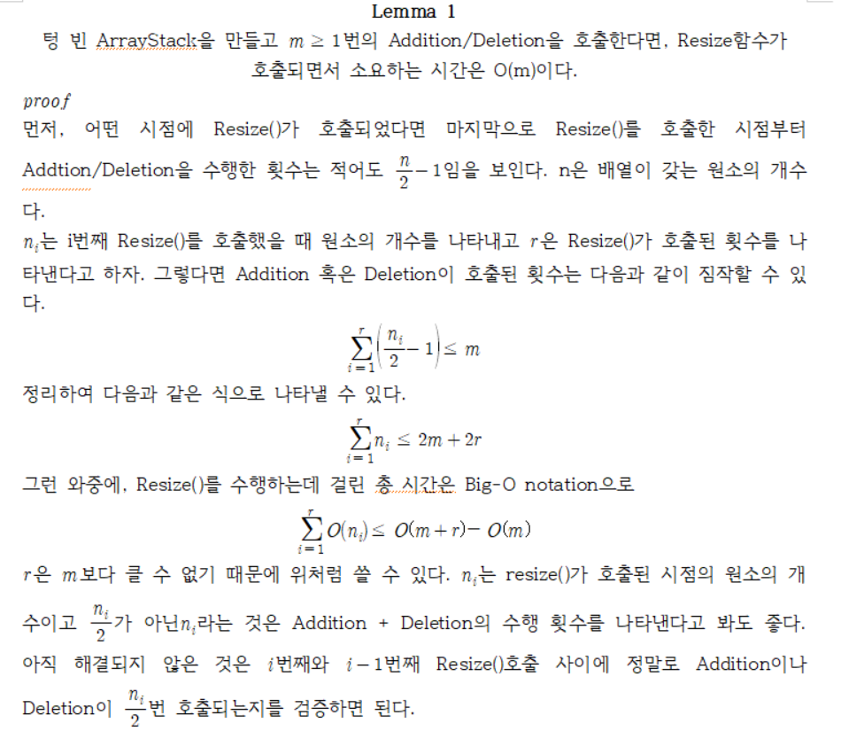 더 나아가서, 텅 빈 Array Stack에서 m번의 Add/Remove operation이 있었을 때, Resize()를 호출하며 발생하는 비용은 O(m)이다.