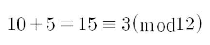 통상적으로 뒤의 등식을 "15는 3의 모듈로 12와 합동이다(15 is congruent to 3 modulo 12)"라고 읽는다. 여기서 Binary operator를 도입해서 다음과 같이 쓸 수고 있다.
