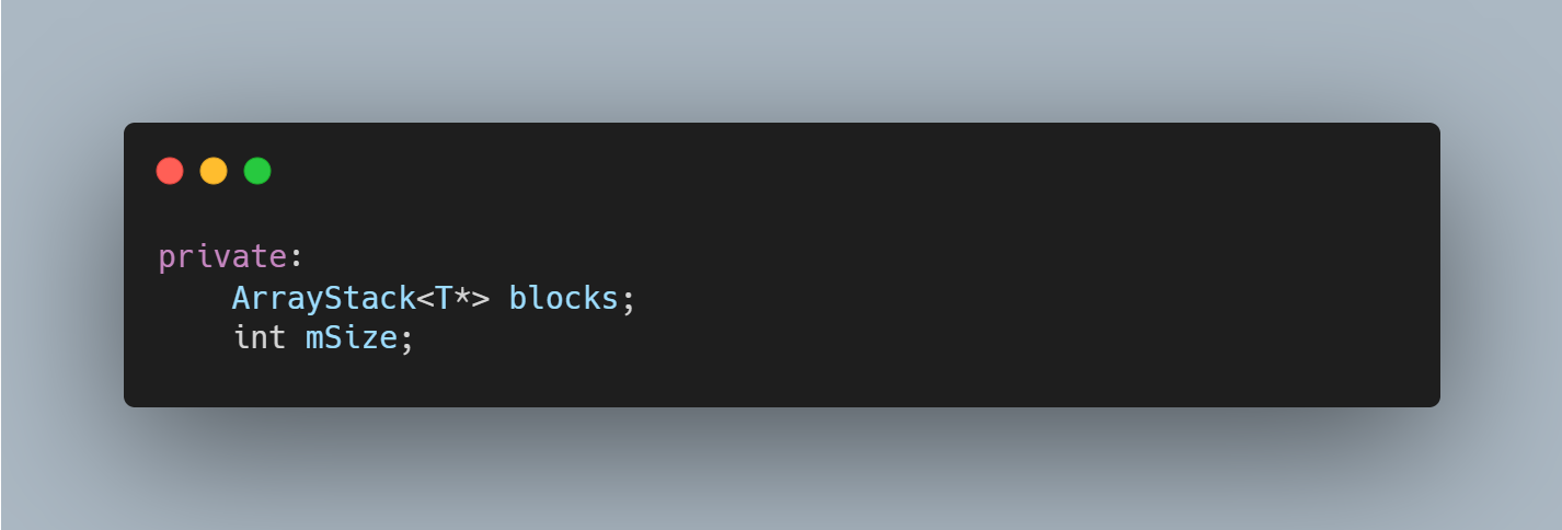 blocks엔 자료의 포인터를 준다. 자료의 개수를 추적하는 mSize.