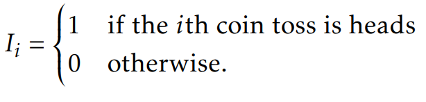 Linearity of expectation은 복잡한 랜덤변수를 간단한 랜덤변수들의 합으로 표현할 수 있게 해준다. 또, 반복적으로 보게 될 유용한 기법이 하나 있는데 그것은 indicator random variables를 정의하는 것이다. 이 binary variables들은 무언가를 셀 때 유용하며 다음 예제를 통해 파악하게 될 것이다.