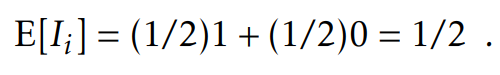 사실 여기서 Pr{X=i}와 두 개의 Binomial을 풀 배경지식을 요구하기는 한다. 이때, Indicator variables와 Linearity of expectation을 사용해서 풀면 위의 풀이보다 훨씬 쉽게 풀 수 있다. 1부터 k에 해당하는 각각의 i에 대해서 다음과 같이 indicator variable을 정의하면