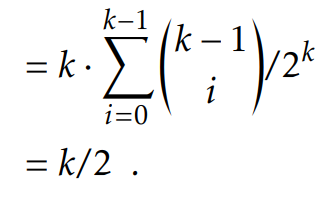 예제) 동전 던지기를 한다고 가정하자. k번 던질 것이고 이때 동전이 head일 때의 Expected value를 알고 싶다. 직관적으로 답이 k/2이라고 생각은 하지만 엄밀하게 풀어보면 다음과 같다.