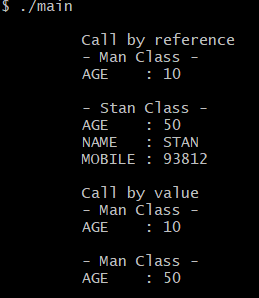 실행결과는 그렇지 않습니다. reference로 받은 함수는 정상적으로 모든 정보를 출력해주었으나 call by value로 받은 함수는 age만 제대로 출력이 된 것을 확인할 수 있습니다.