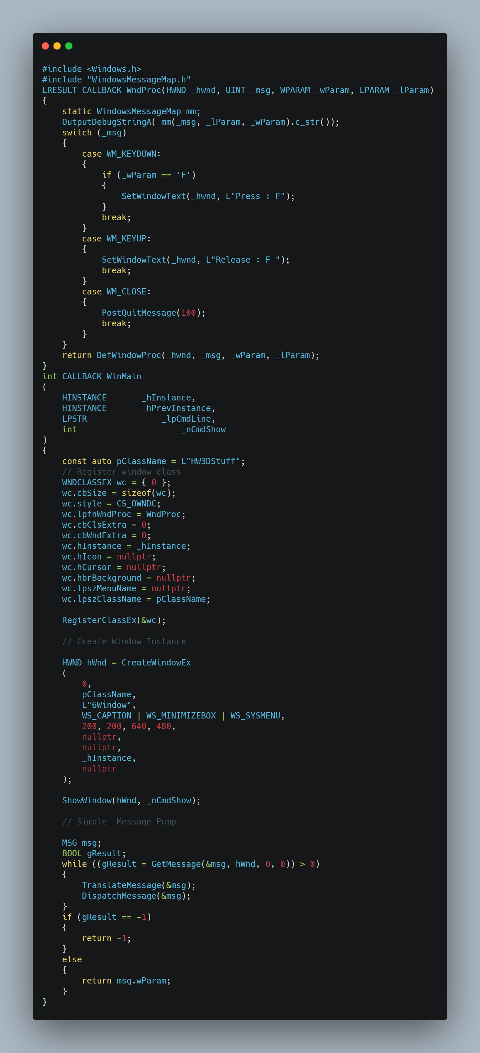 [5] - Window Framework (0) 2021.07.10 [4] - Mouse and Char (0) 2021.07.03 [2] - Message Pump (0) 2021.07.03 [1] - Creating a window (0) 2021.07.02 [ Anything ] C++ - 1 (0) 2021.06.21