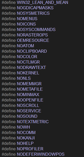 매크로를 정의한 Header File을 추가합니다. 이유는 간단한데 <Windows.h> Header File을 Include할 때, 잘 쓰지도 않을 기능들까지 한꺼번에 포함되는 것을 가능한 막을 생각이기 때문입니다. 멋지게 포장하면 몇 가지 기능을 Disable하겠다는 말입니다.