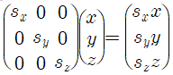 이차원 공간에서는 z의 모습을 볼 수 없었습니다 여기서 scaling factor가 서로 같다면 이 scaling은 "uniform scaling"이라고 부릅니다. 그것이 아니라면 "non-uniform"이라고 합니다. 이 factor가 1보다 크다면 물체는 확대가 될 것이고 0보다 크고 1보다 작다면 물체는 줄어들 것입니다.