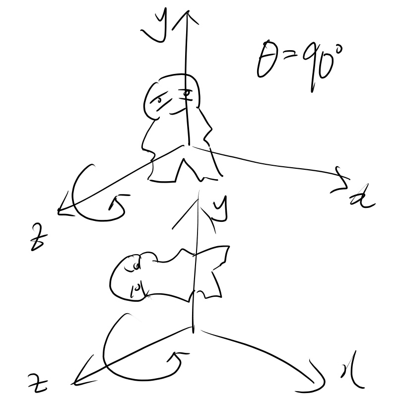y축 회전도 기본 개념이 완전히 같습니다. 어려운 것이 하나도 없으니 넘어갑니다.