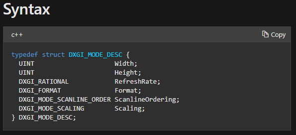 DXGI_MODE_DESC는 Back Buffer의 Display mode에 대한 설정을 합니다.