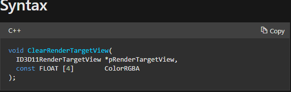 까만 화면을 볼 수 있습니다 이처럼 즐거울 수가 없습니다. 새롭게 뭔가 만들었습니다. 근데 왜 하필 검은색일까요? 모르겠습니다. 일단은 마침내 작성한 코드로 그래픽 카드가 무슨 짓을 하고 있다는 것을 알 수 있게 되었습니다. 정말 그런가? 한 번 테스트를 해보도록 하겠습니다. 단순히 Back buffer를 비우거나 특정한 색으로 채우는 실험입니다. 이를 위해서 사용할 함수는 ClearRenderTargetView입니다.