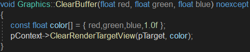 마지막으로 더 이상 pBackBuffer는 필요가 없으니 메모리를 해제해줍니다. 당연한 수순이지만 pTarget역시 GFX가 제거될 때 Release()를 호출하는 편이 좋습니다. 이제 Back Buffer를 비우거나 색을 채우는 함수를 만들면 됩니다.