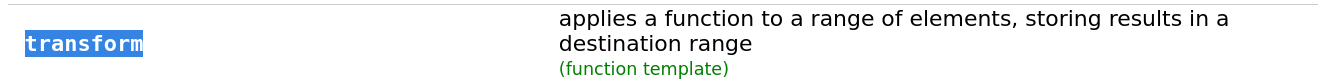 이전에 했던 내용이긴 합니다. 그런데 Transform이라는 함수가 추가었습니다. 논리적으로는 두 함수는 같은 기능을 합니다. 어떤 Container의 원소들에 대해서 어떤 함수, predicate를 적용하는 것입니다. 그런데 설명을 읽어보면 미묘하게 다르다는 사실을 깨닫게 됩니다.