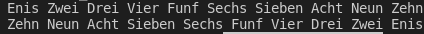 { Enis Zwei Vier Funf Drei Sechs Seiben Acht Neun Zehn } 이 될 것입니다.