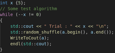 이 함수야 말로 제법 유용하게 활용할 수 있을 것 같습니다. 특히, 게임 같은 요소엔 자주 모습을 보일 것 같습니다. 설명을 읽어보면 무작위로 어떤 컨테이너의 범위 내의 요소들을 섞는다고 되어 있습니다. 우리가 직접 이 Random Function을 지정해 줄 수도 있습니다.