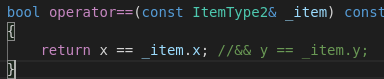 그러나, 구조체의 overload operator==()의 조건을 오직 x로만 판단한다면 두 벡터는 정렬 이후에도 같은 값을 가질 것입니다.