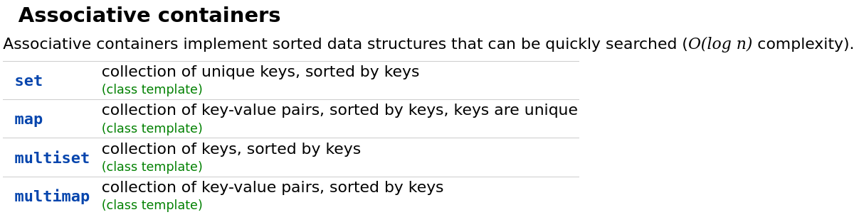 Container Adaptors에 대한 설명란에 provide different interface for sequential containers라고 명시되어 있기 때문에 다음과 같은 associative container에는 해당 사항이 없을 것입니다.