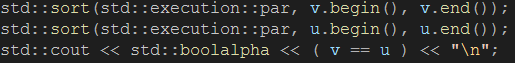 parallel_unsequenced_policy는 이 알고리즘을 다중 코어에서 동시에 돌려도 상관이 없으며 vectorize도 가능하다는뜻입니다. 마지막 unsequenced_policy는 단일 코어에서 동작해야 하고 vectorize도 할 수 없음을 명시합니다.