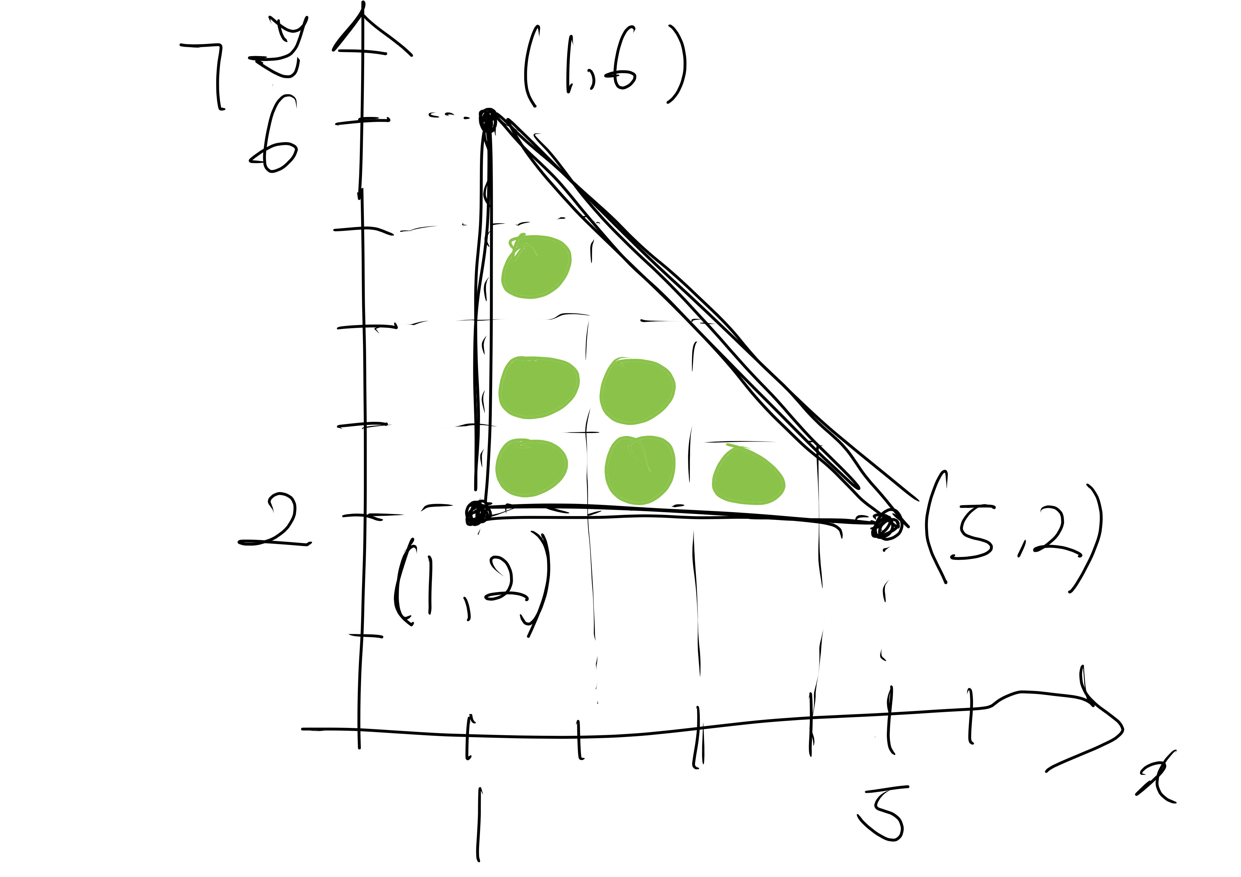 Texture coordinates 상에선 (1, 6) = (0, 1) / (1, 2) = (0, 0) / (5, 2) = (1, 0)이 됩니다. 이때 가장 좌측 하단의 fragment의 TC 상의 좌표는 (0.125, 0.125)입니다. 어느 한 점을 (0, 0)으로 잡고 상대적인 좌표를 만드는 것입니다.