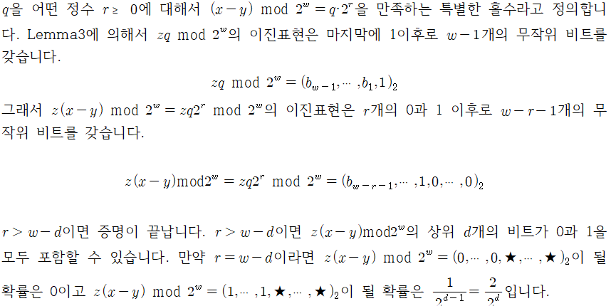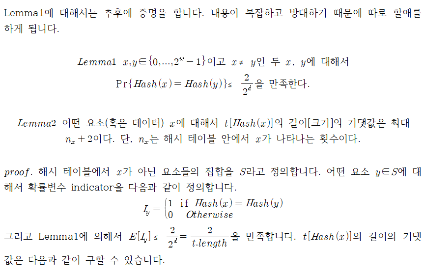 솔직히 Lemma1의 증명은 하나도 알아들을 수가 없습니다. 정말 간신히 번역만 한 정도입니다. 아직도 Hash(x)에서 모듈로 연산이 왜 코드에 반영이 안 된 것인지 설명할 수 없습니다. HashCode에 대한 부분을 살짝 엿보고 왔으나 답을 얻을 수 없었습니다.