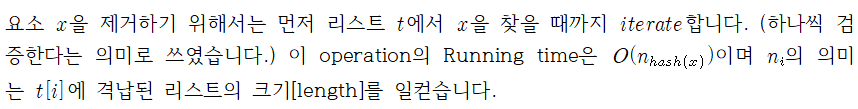 figure 1a Hash table은 List를 요소로 갖는 배열 t로 구현을 합니다. 격납되어 있는 모든 요소의 수를 n으로 추적합니다.