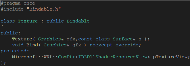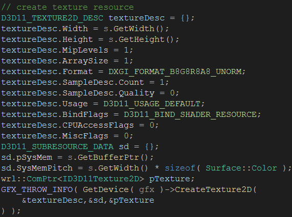 figure 2a member variable인 ID3D11ShaderResourceView가 COM object로 Wrapping 되어 있는 것을 확인할 수 있습니다. 이는 Rendering 기간 동안에 Shader가 접근할 수 있는 Subresource를 명시하는 일종의 Interface입니다. 즉, Texture를 위해서 구성한 Description을 받아 D3D에 정보를 넘겨주는 매개 역할을 다한다고 볼 수 있습니다.