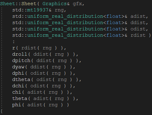 figure 6b 가장 먼저 온갖 랜덤 요소들을 초기화 시켜줍니다. 핵심은 이 다음입니다. Object space 상의 평면의 좌표를 결정해 주도록 합니다.