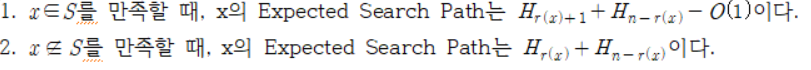 H는 Harmonic number, r(x)는 정수집합 S의 각 원소 x의 Rank이다.S의 각 원소의 Rank는 원소 x보다 작은 원소의 개수를 의미한다. Lemma 2는 존재하지 않는 원소를 알아차리기까지 경로를 계산합니다. 이건 Find(x)라는 Operation을 효과적으로 구현할 수 있음을 암시합니다. 있든 없든 거의 비슷한 Running time이 나오기 때문입니다. 사실 Treap의 진짜 장점은 add와 remove를 적용할 수 있다는 점입니다.