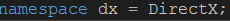 모든 실험이 현재 Graphics에서 이루어지고 있습니다. 따라서 Graphics class 정의된 파일에서 해당 헤더파일을 불러옵니다. 그런데 키보드로 쳐보면 DirectX는 조금 치기 번거롭습니다. 따라서 매번 함수를 호출할 때마다 DirectX::를 불러오는 대신에 namespace를 사용해서 편하게 쓰도록 합니다.