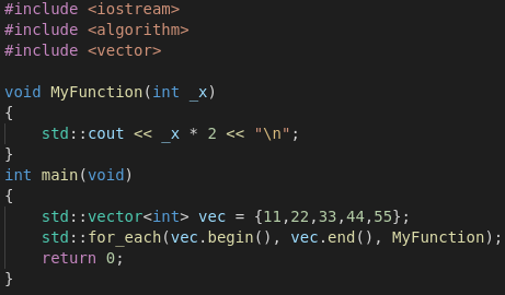 단순히 Loop를 이르는 말이기도 하지만 Function Template의 기능도 존재합니다. std::for_each의 형태로써 어떤 범위의 요소에 함수를 적용시킬 수 있습니다.