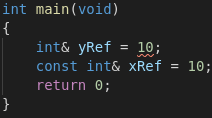이 밖에도 상식적으로 rvalue의 메모리를 참조하는 모든 행동이 GCC/G++ Compiler 기준으로 에러를 발생시킵니다. 그런데 한 가지 재미있는 점이 있습니다. 원래 & operator가 rvalue를 반환하기 때문에 Operand의 좌측에 쓸 수 없었지만 const일 경우엔 다음과 같이 쓸 수가 있습니다.