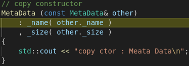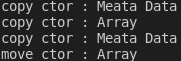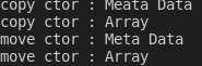 Meta Data와 ArrayWrapper의 move ctor와 copy ctor에 한 줄의 코드를 각각 삽입하고 돌려보면 다음과 같은 결과를 얻습니다.