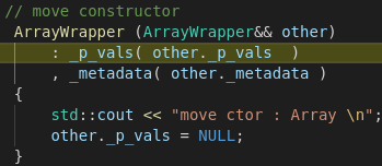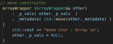 이게 안 되어야 정상인데 운이 좋으면 아무런 문제 없이 잘됩니다. 안 된다는 가정하에 설명을 읽어봤습니다. 구조를 조금 이해를 하면 됩니다. ArrayWrapper의 Move Constructor가 호출되는 것은 자명합니다. 그리고 제 생각엔 move ctor가 호출되면서 metadata의 move ctor이 호출될 것 같았습니다. 그게 아니었습니다.