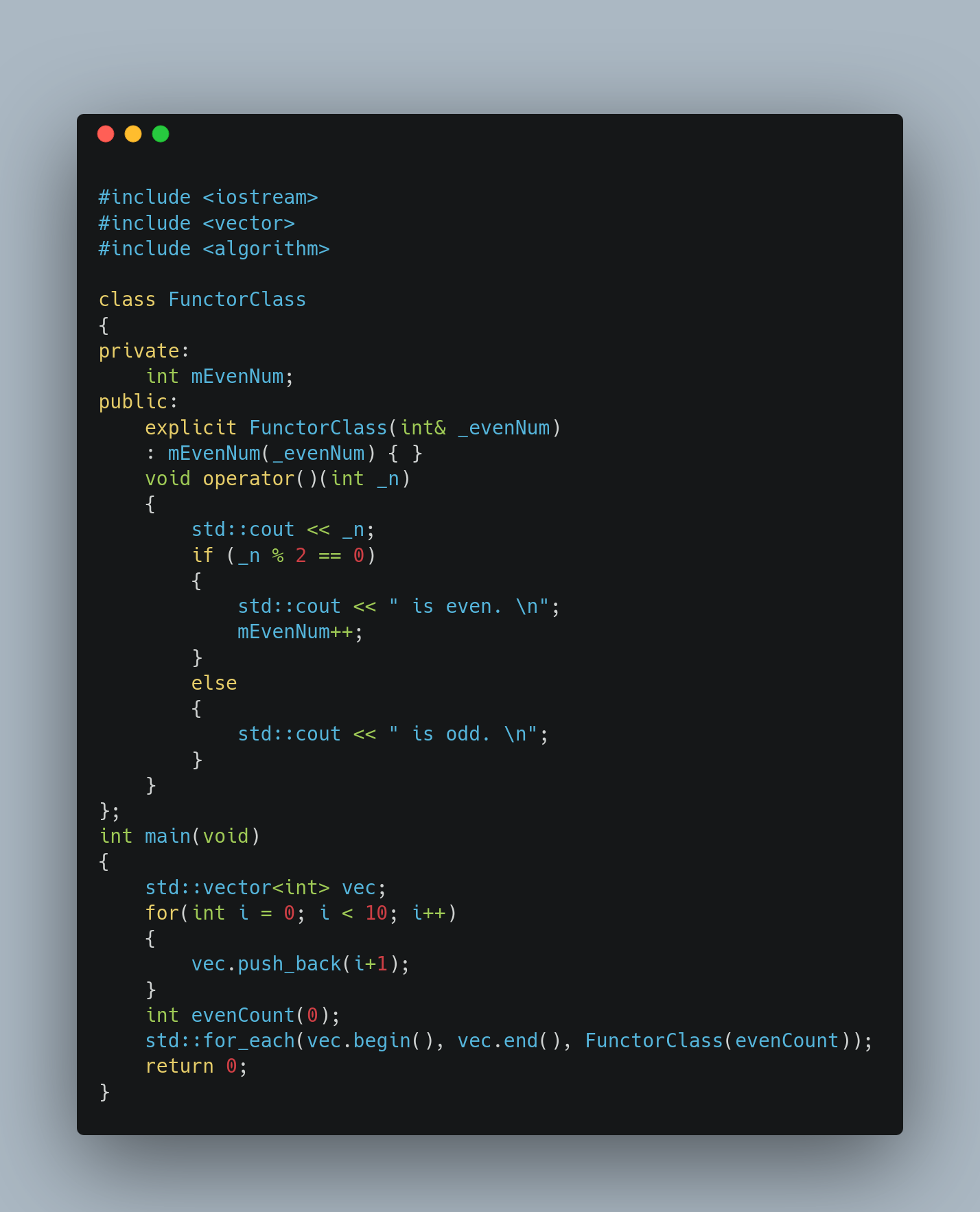 위와 같은 예제는 Function Object를 바탕으로 똑같은 결과를 구현할 수 있습니다.
