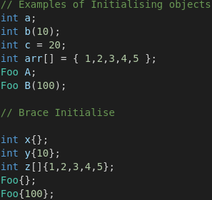 12. https://docs.microsoft.com/en-us/cpp/cpp/initializing-classes-and-structs-without-constructors-cpp?view=msvc-160(Brace Initialisation)