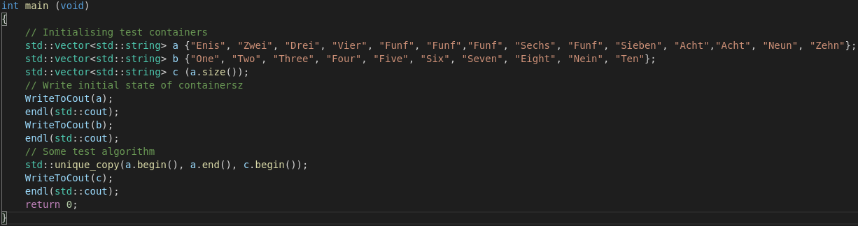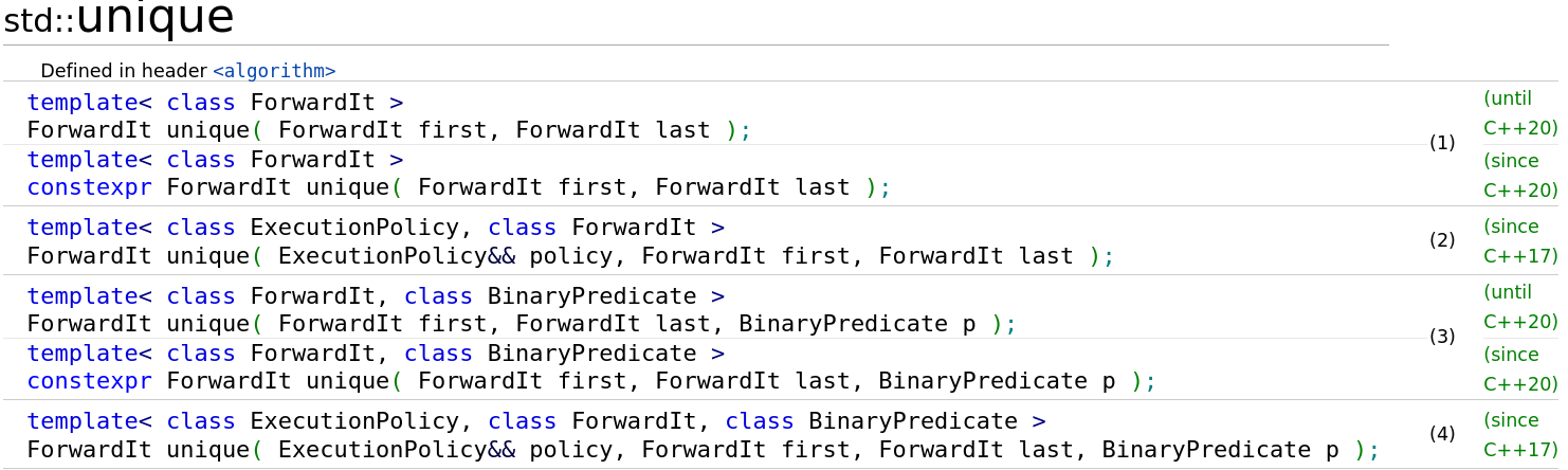 결과를 보니 중복이 되더라도 연속하지 않으면 제거하지 않는다는 사실을 알 수 있습니다. 즉, Funf가 여러 번 연속해서 반복되면 제거를 해버리지만 그것이 연속되지 않는다면 제거하지 않습니다. 즉, std::unique는 Container 내부에 모든 원소가 유일하게 만들어주는 기능은 수행할 수 없다는 사실입니다. 그러면 std::unique_copy가 하는 일도 자명합니다. 추측하건데 연속적이지 않은 원소에 대해서 복사를 수행할 것입니다. 만약 위의 예제에서 a를 c에 대해 복사한다면 결과도 반드시 같을 것입니다.